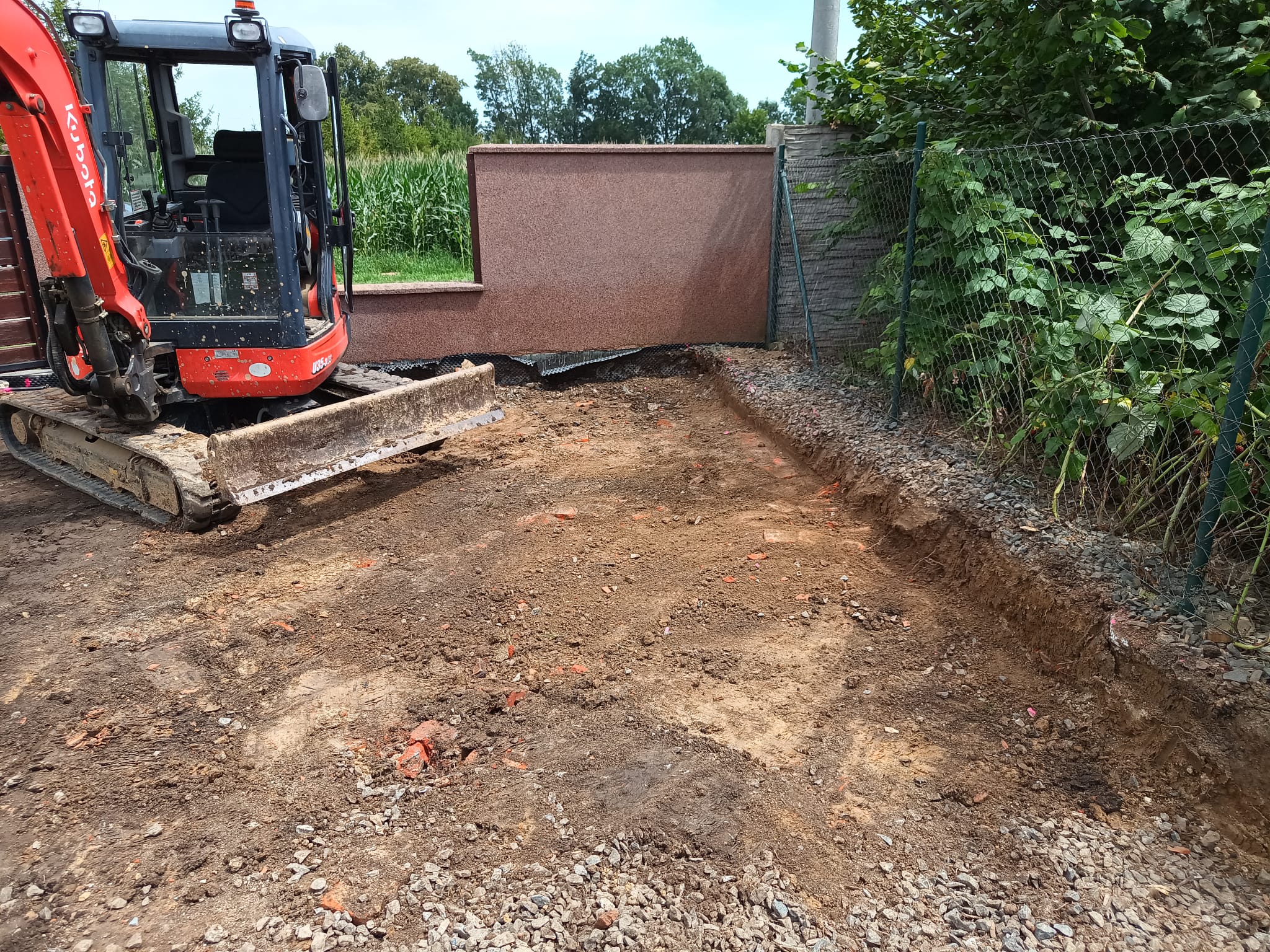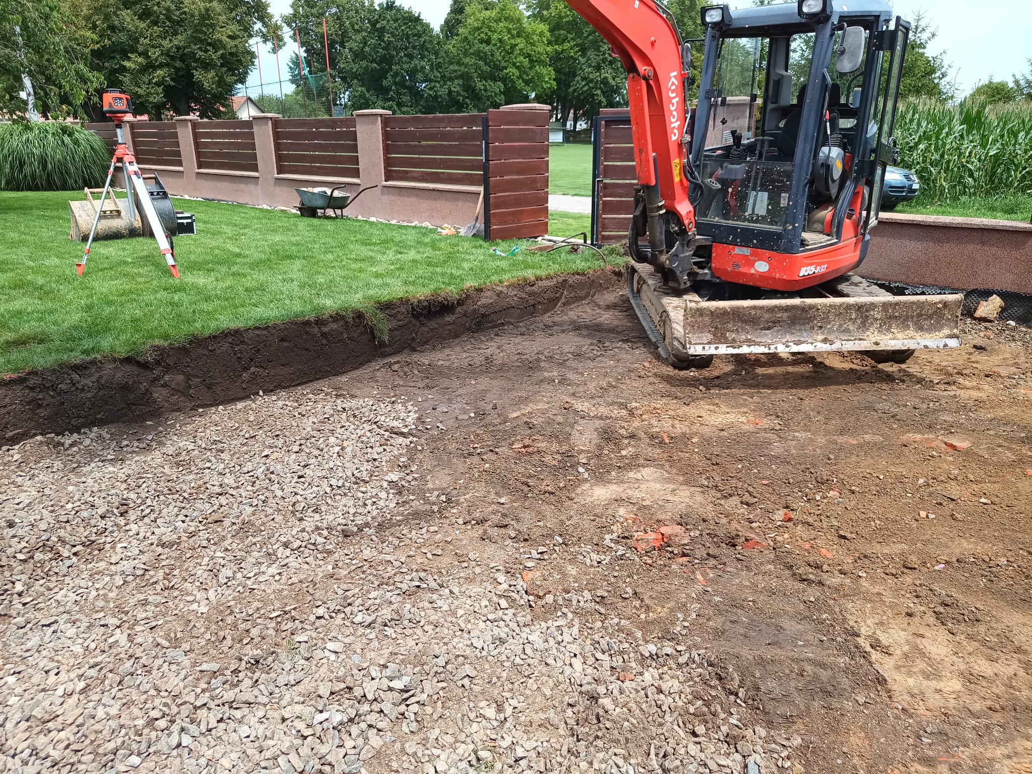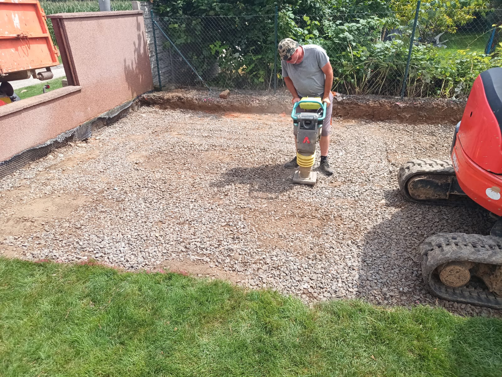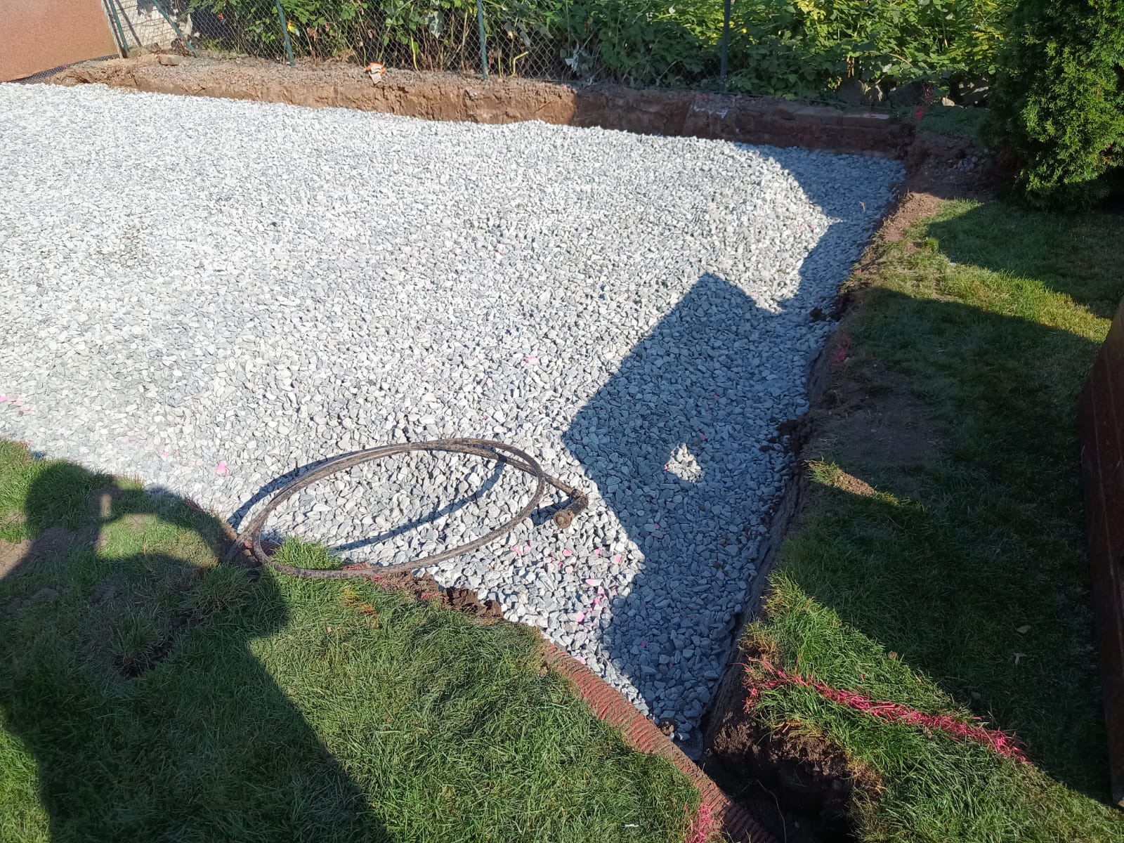Příprava na zámkovou dlažbu pod pergolu.