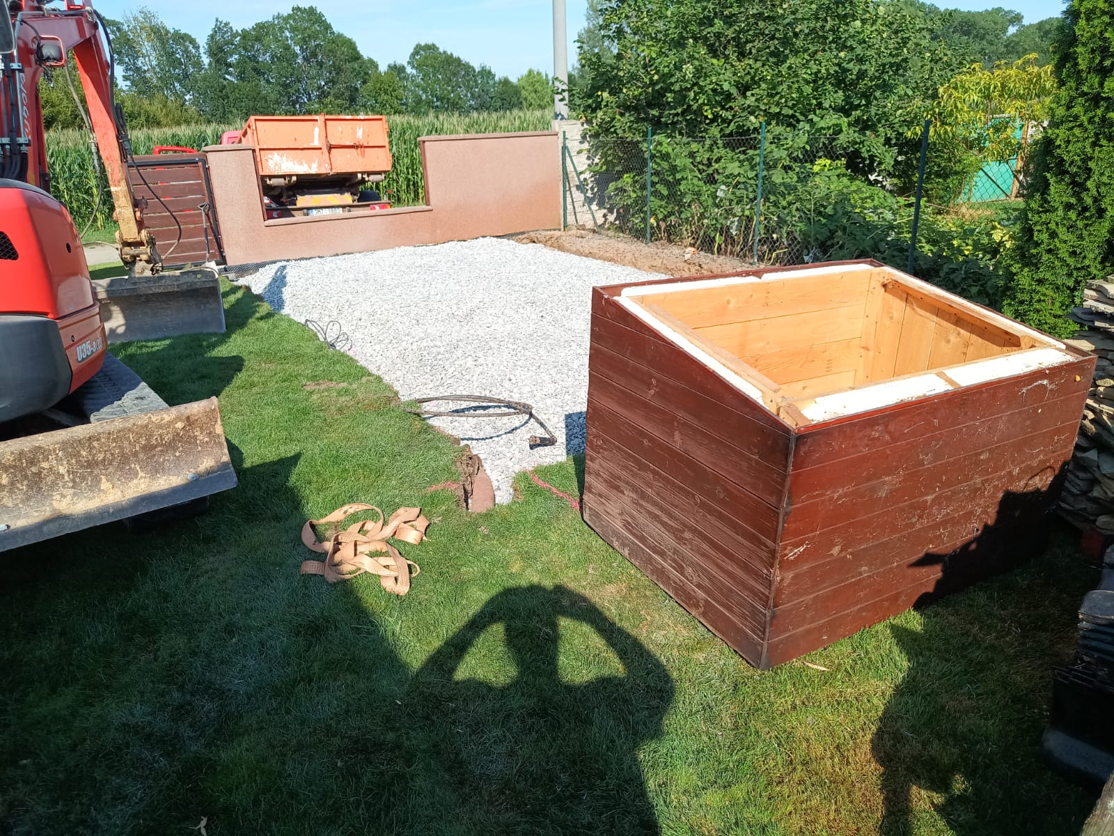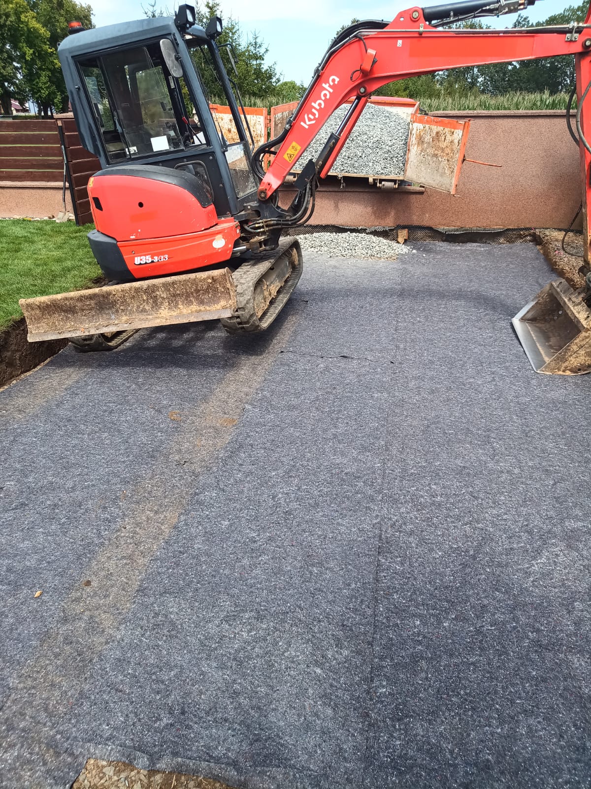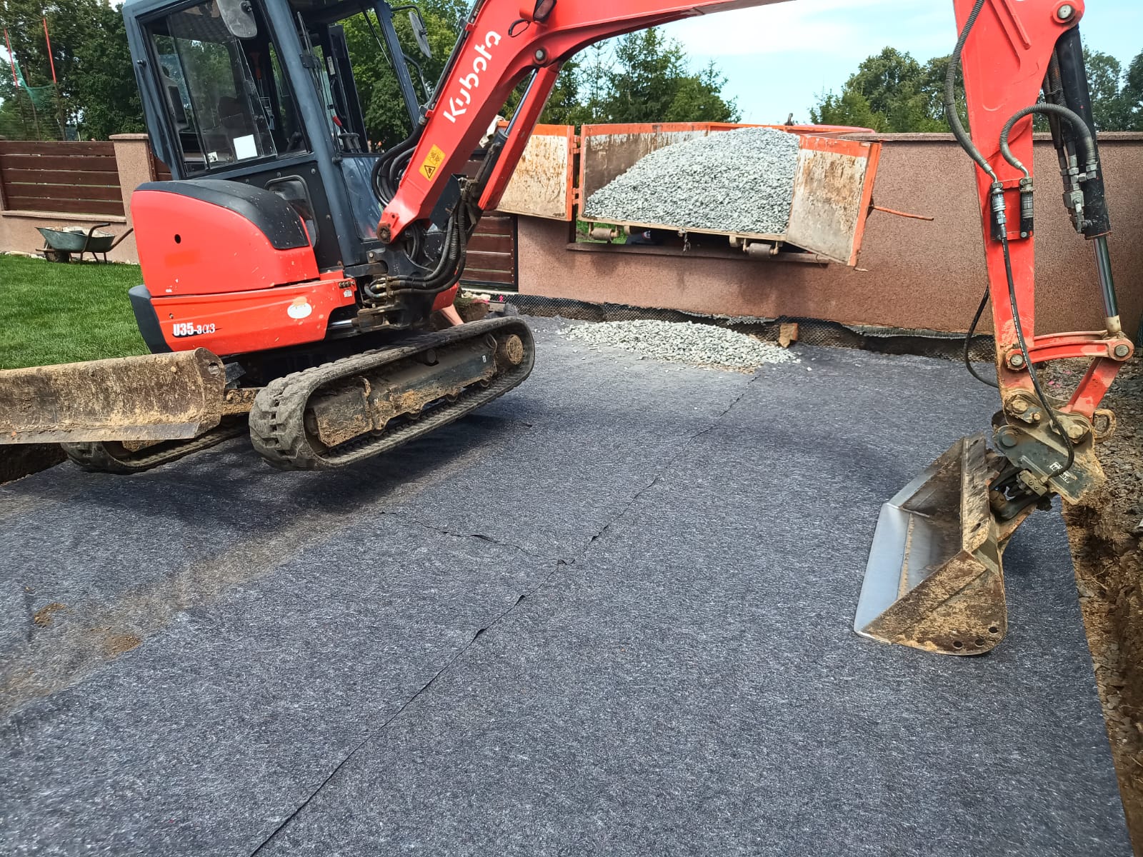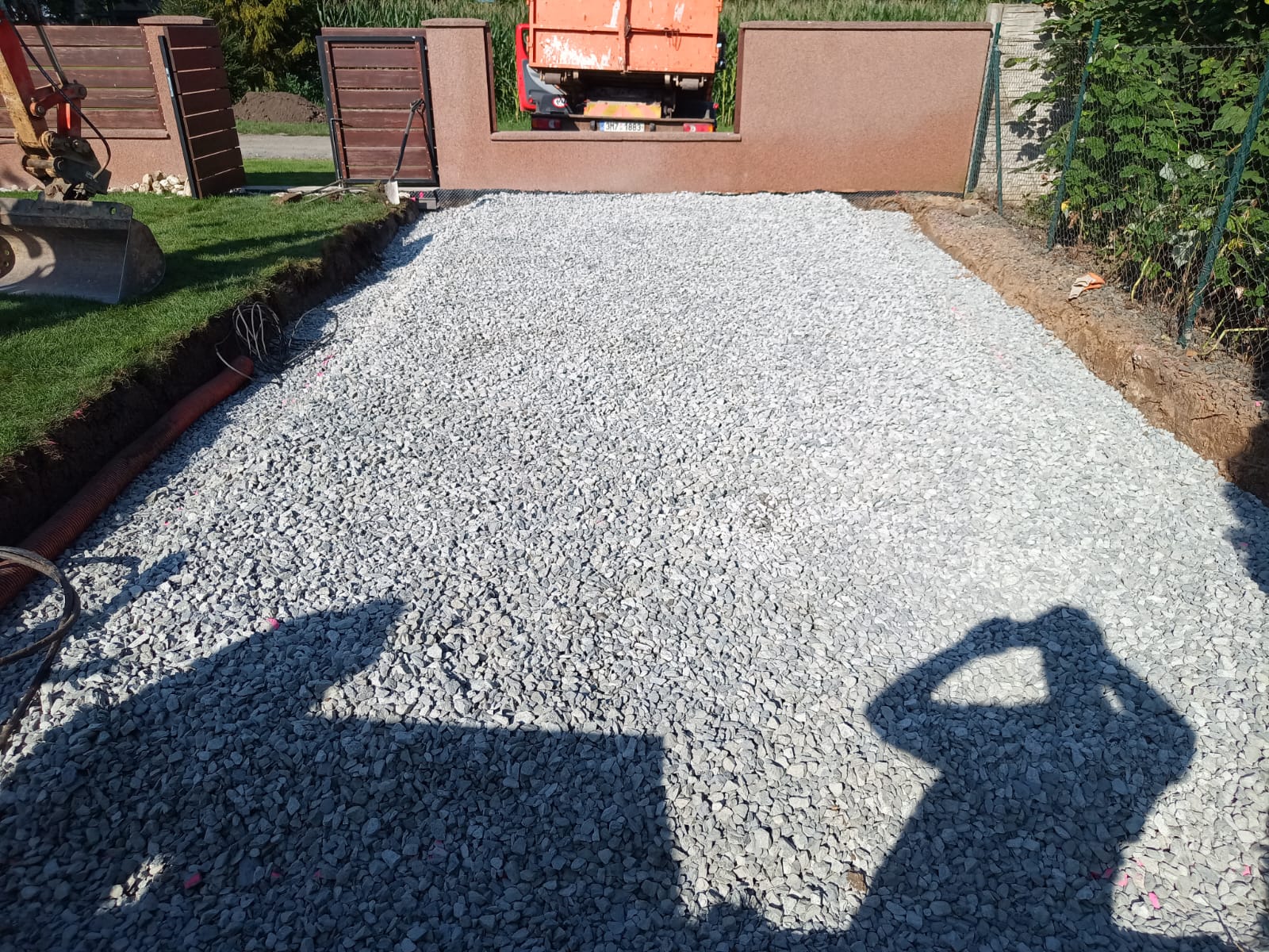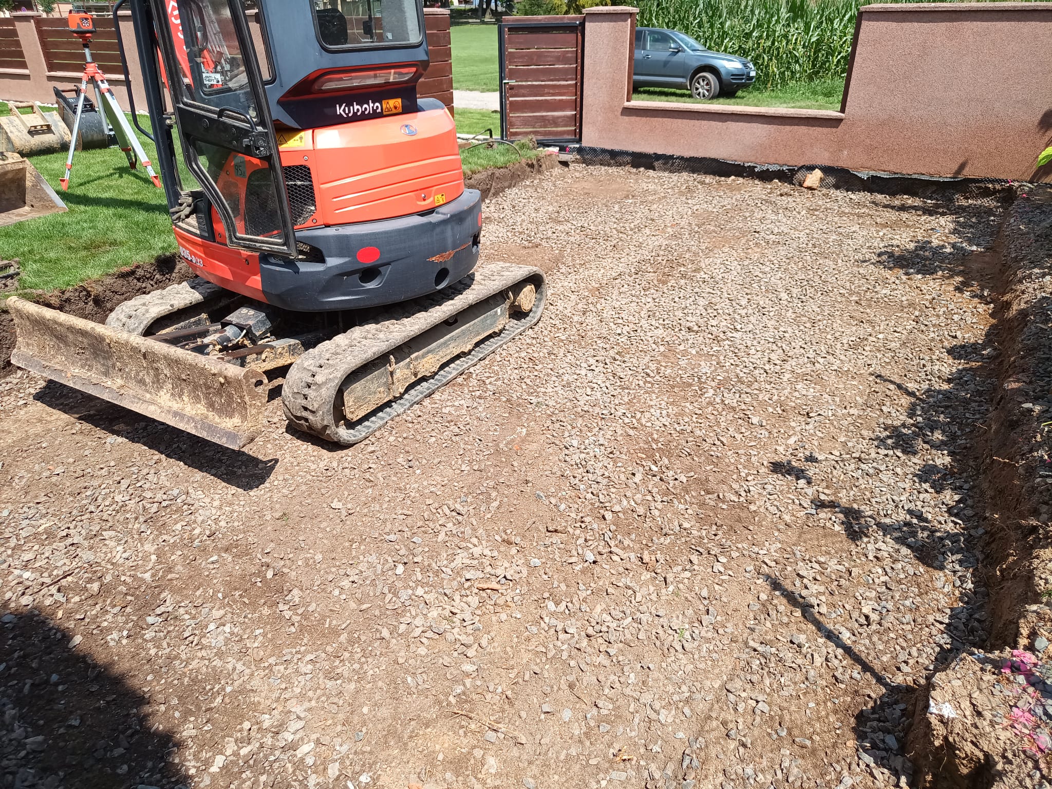 Příprava na zámkovou dlažbu pod pergolu.
