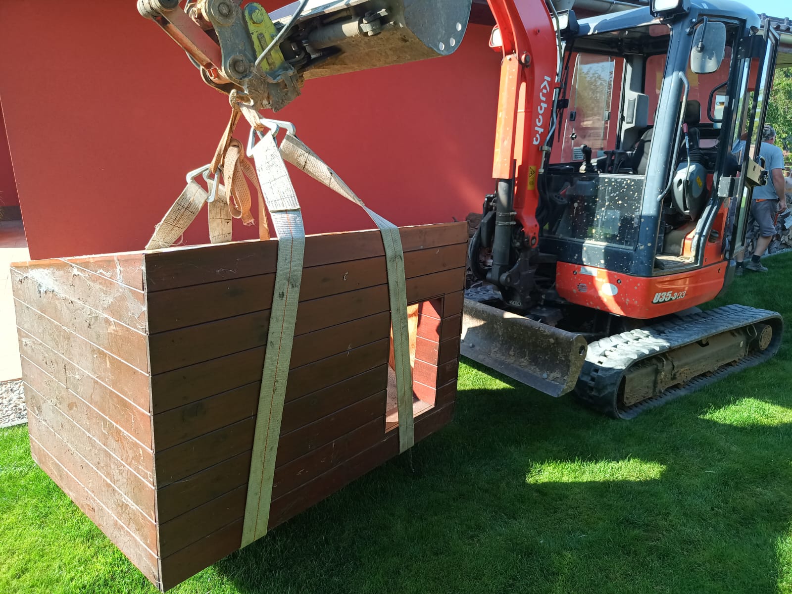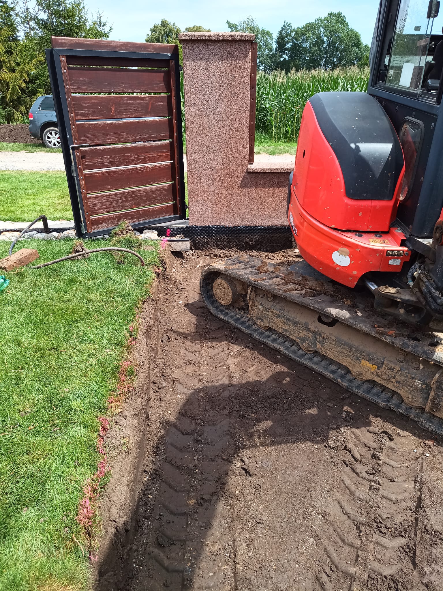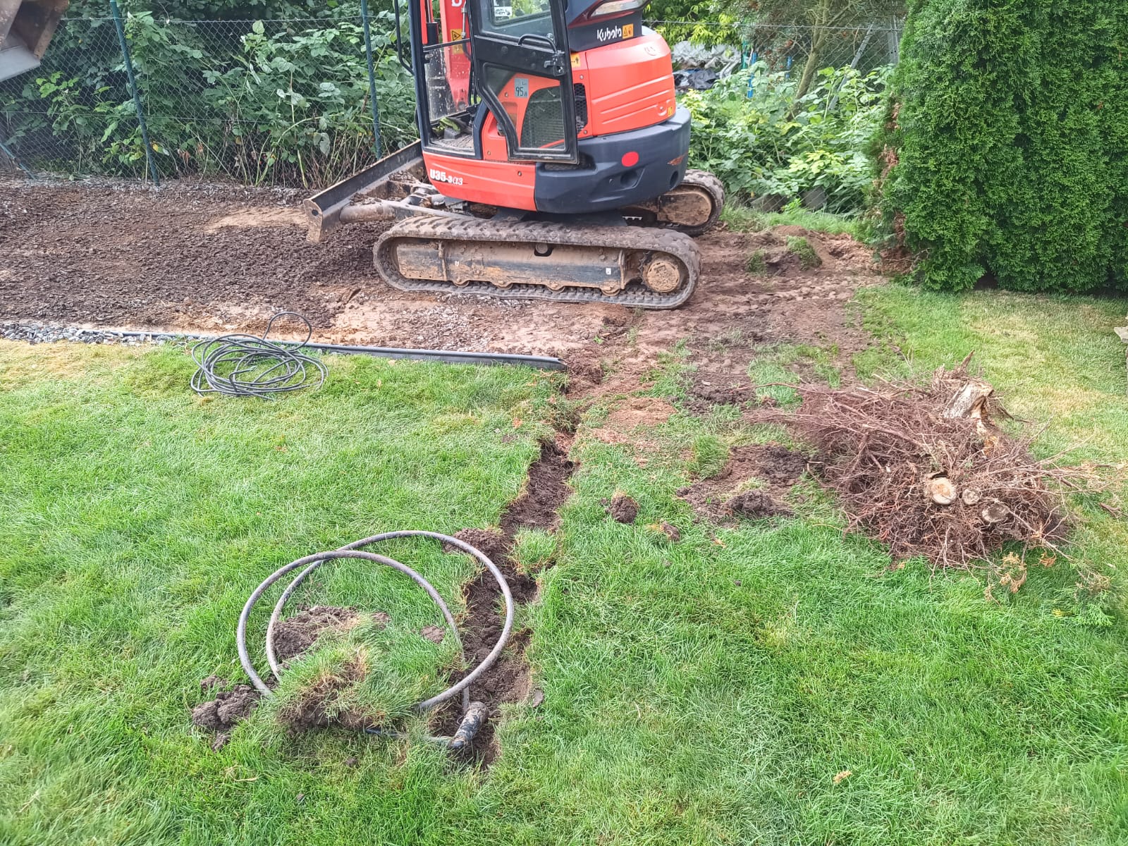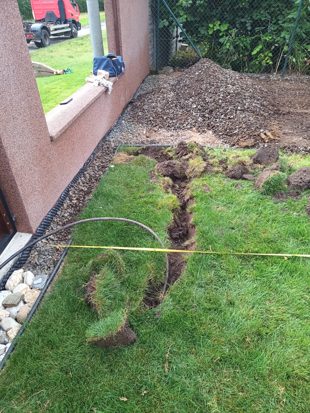 Příprava na zámkovou dlažbu pod pergolu.